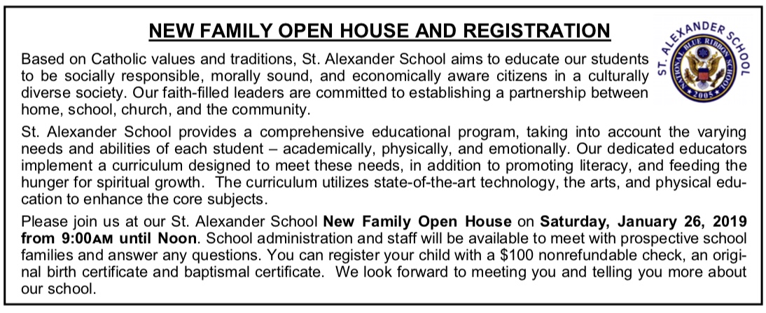 Based on Catholic values and traditions, St. Alexander School aims to educate our students to be socially responsible, morally sound, and economically aware citizens in a culturally diverse society. Our faith-filled leaders are committed to establishing a partnership between home, school, church, and the community.