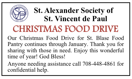 If the Society of St. Vincent de Paul appeals to you and you want to learn more please contact our parish office at 708-448-4861.